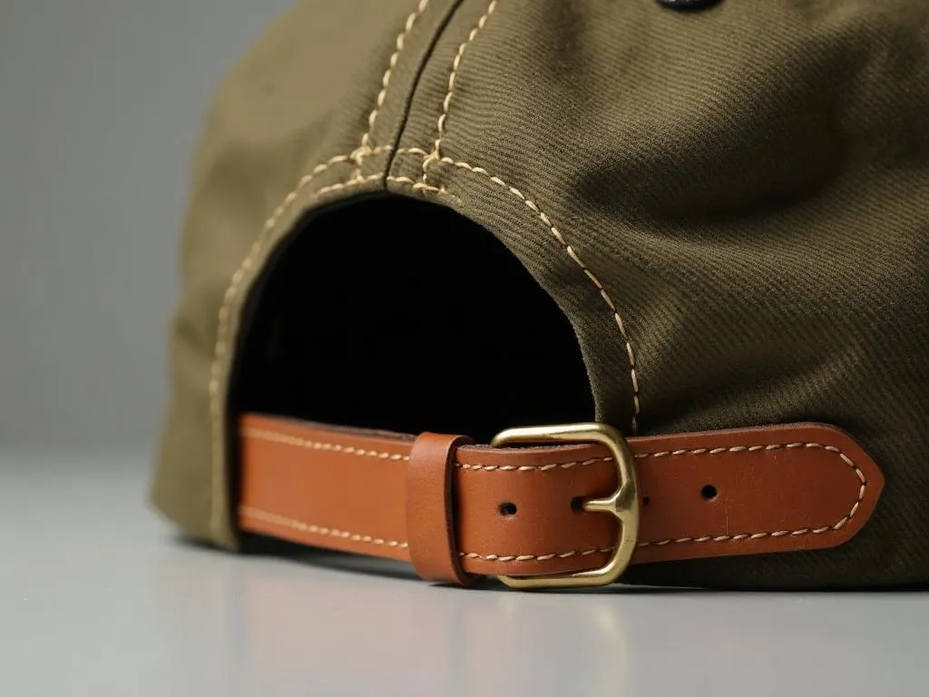 Upgrade the closure. Replacing a plastic snap with a Leather Strap and Brass Buckle instantly increases the perceived value of any fabric hat, especially on canvas and corduroy styles.